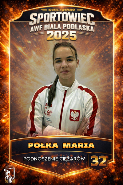 Akademia Wychowania Fizycznego Józefa Piłsudskiego w Warszawie - Filia w Białej Podlaskiej ogłosiła Plebiscyt na Najpopularniejszego Sportowca 2025 roku. W gronie nominowanych studentów bialskiego AWF-u (łącznie 39. osób) znaleźli się także liczni przedstawiciele AZS AWF Biała Podlaska, którzy reprezentują sekcje: piłki ręcznej, piłki siatkowej, lekkiej atletyki, pływania i podnoszenia ciężarów.Głosy w plebiscycie można oddawać do 17 lutego (włącznie).