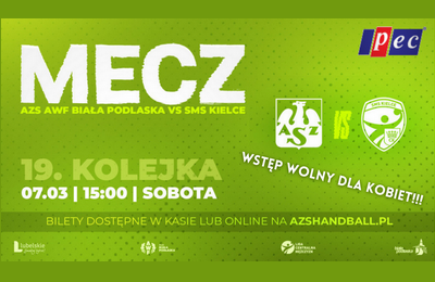Najbliższy mecz piłkarzy ręcznych AKPR AZS AWF Biała Podlaska odbędzie się już 7 marca 2026 roku (sobota) o godzinie 15:00. Rywalem naszego zespołu będzie SMS ZPRP I Kielce. Zawody odbędą się w przededniu Dnia Kobiet i z tej okazji Władze Klubu, zawodnicy i trenerzy... składają wszystkim Paniom najserdeczniejsze życzenia, a także zapraszają na mecz, na który każda z Pań wejdzie bez konieczności zakupu biletu!