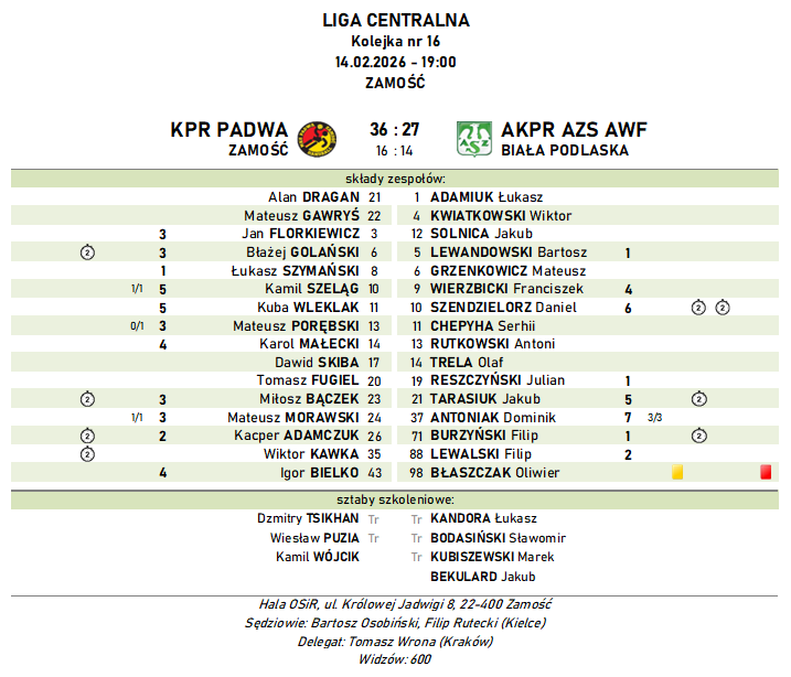Jak przystało na derby, mecz w Zamościu przyniósł duża dawkę sportowej walki. Pomimo dosyć wysokiej porażki, piłkarze ręczni AKPR AZS AWF Biała Podlaska, przez większa część tego spotkania toczyli wyrównany bój z gospodarzami, KPR-em Padwą.